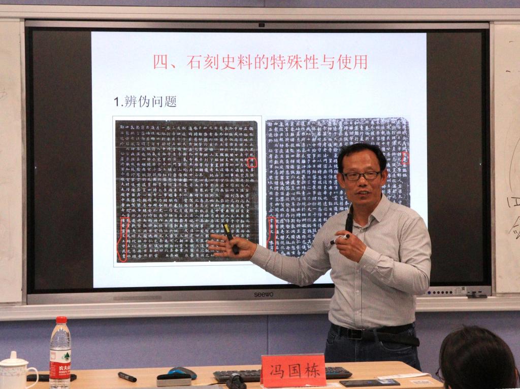 冯国栋教授在石刻文献对佛教研究的助益这方面着重强调了新材料的功能:其一,新材料可以提供新的历史事实。在石刻文献的出土下,大明宝和黄山体等在往日无法探究的词语,其意义得到了揭示与完善。其二,也是最为重要的一点,新材料提供了重新审视旧问题的机会。冯国栋教授举了《金刚经》和《文殊说般若经》两者在古今佛教中重要性不同的例子,着重说明用新材料审视旧问题需要回到新材料所处的年代去判断。他强调,“语言就像指月的手指”,要注重的是月,要注重的是内容与联系。