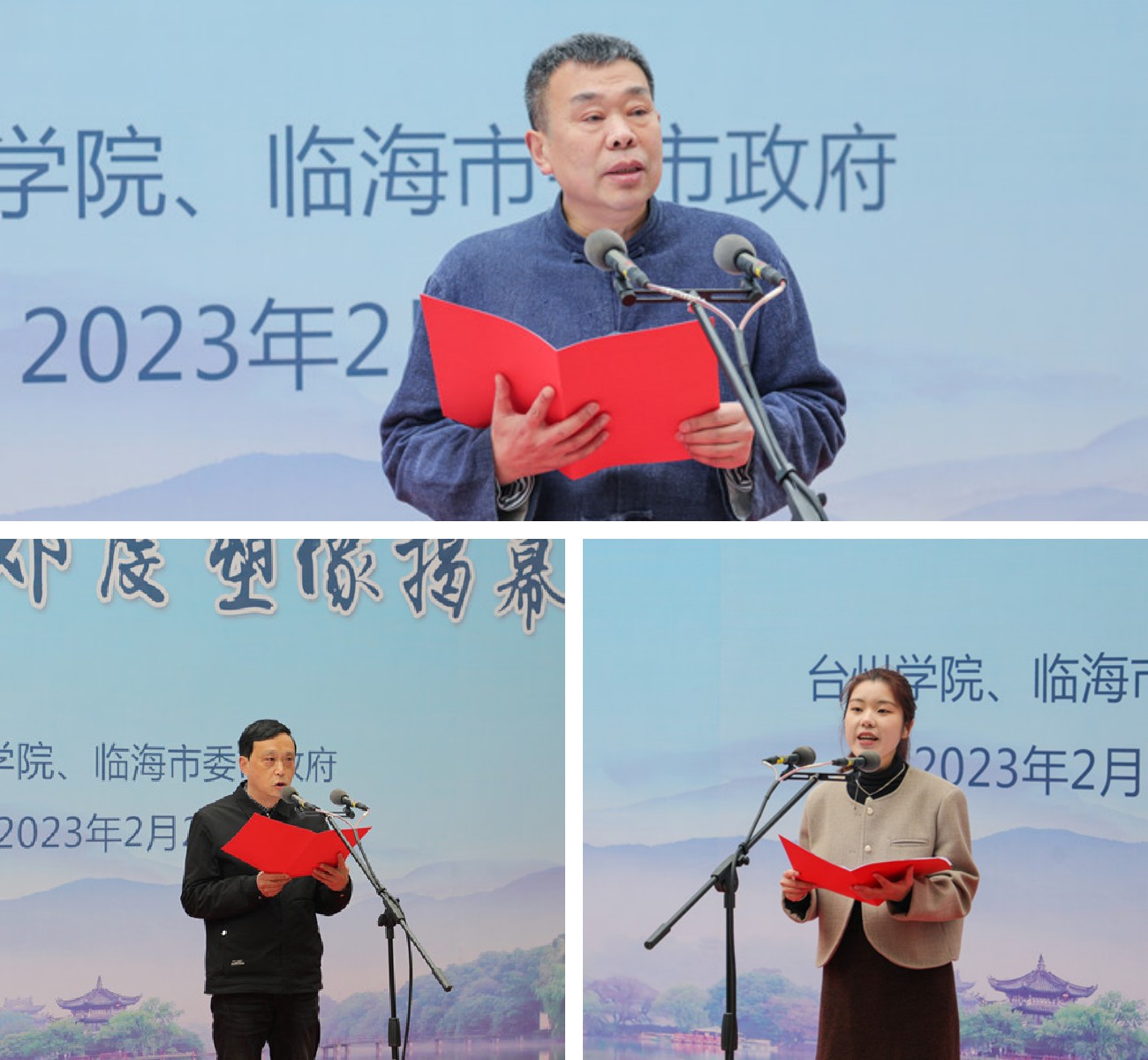 2月23日上午,临海国学院郑虔塑像揭幕仪式在台州学院广文书院广场举行。校党委书记崔凤军,临海市委书记吴华丁,校党委副书记金先龙,临海市人民政府副市长林敏,台州学院“三台学者”、特聘教授、临海国学院院长张京华出席活动。临海市相关单位代表、台州学院相关部门及师生代表参加活动。崔凤军和吴华丁共同为郑虔塑像揭幕。