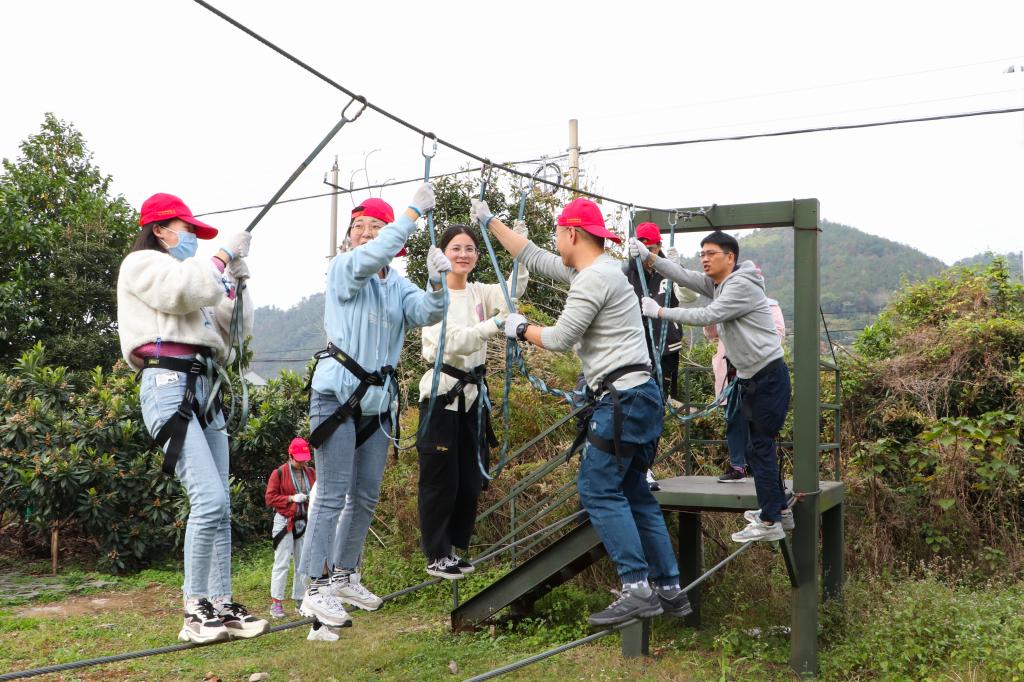 上午,在红军谷教官的带领下,师生党员相互协作、互帮互助重走长征之路。通过“翻越雪山”“巧度独木桥”“丛林飞跃”“飞夺泸定桥”等充满挑战性的15个项目,切身感受中国工农红军当年的艰辛与不易,领悟不忘初心、牢记使命的深刻内涵,体验敢为先锋、继往开来的勇气与决心。