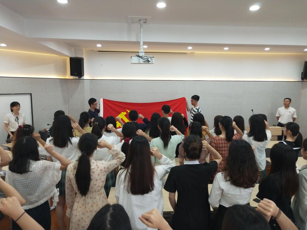 重温一次入党誓词,永葆入党初心。党课结束后,49位毕业生党员再次站在党旗下,郑重宣誓 “我志愿加入中国共产党……”。他们回望自己在大学时期写入党申请书的情形,再次感受到当时的热忱与初心,激励自己在今后不负使命,以实际行动为母校和党旗增添光彩。