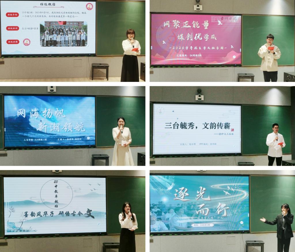 在优良学风班建设中期汇报会上,24个班级围绕思想建设、班风学风培育、班级特色活动、寝室文明建设等方面,全面展现了“同德一心,笃学致知”的优良风貌。21中教三台班王思煜以视频的方式,分享了建设校特优学风班的宝贵经验。