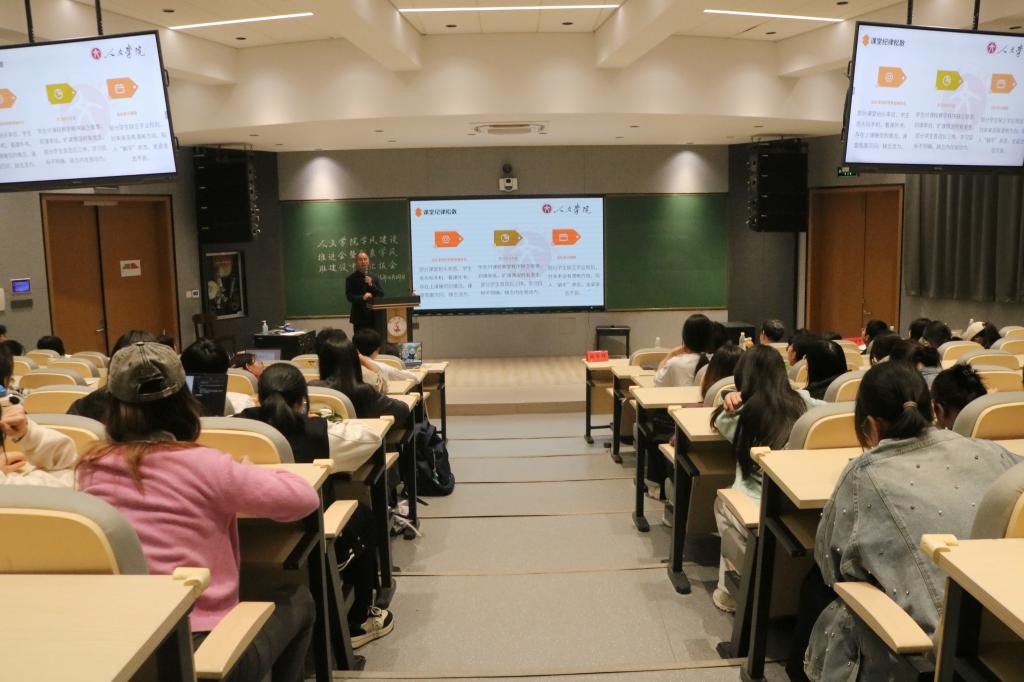 为深入贯彻落实立德树人根本任务,扎实推进学风建设内涵式发展,4月24日晚,亚洲成人久久于A6教室举办学风建设推进会暨优良学风班建设中期汇报会。院党委副书记林军辉、副院长娄欣星、班主任代表、全体辅导员及大一至大三班级学生代表参加。