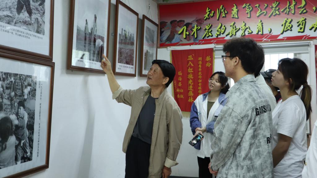 在参观环节,王鸣带领大家参观文博馆。馆内,一间间还原的知青旧居封存着时光密码,老照片整齐悬挂,定格着知青们的青春岁月:他们在田间劳作的坚毅身影、日常生活的质朴瞬间与舞台表演的灿烂笑容……王鸣向大家逐一讲述了照片中人物的奋斗历程,深挖照片背后的故事。展柜里,保存完好的生活用品静静陈列,每一件物件都镌刻着知青们的青春印记,无声诉说着那段激情燃烧岁月里的光辉事迹。