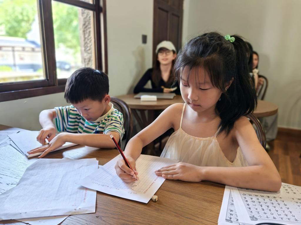 下午,浙江省书法家协会会员虞巧玲为孩子们带来书法课。虞巧玲并未急于让孩子们执笔书写,而是生动讲述了笔墨纸砚背后的历史与文化,瞬间勾起孩子们的好奇心。实践环节,虞巧玲师根据每个孩子的特点耐心指导,纠正握笔姿势,并不断鼓励孩子们突破自己,在横竖撇捺间感受汉字的独特魅力。写作课更是充满巧思。浙江省作家协会会员杨红峰以“写作最需要的是什么”这一问题引出本堂课的主题,并指出阅读对写作的帮助是巨大的。这堂写作课不仅让孩子们明白了阅读是写作的根基,更点燃了他们在阅读中汲取力量、在写作中绽放创意的热情。