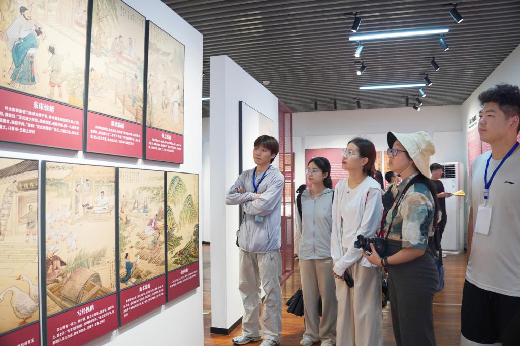随后,实践队来到景区内的兰亭书法博物馆。该馆以“一日千载”为主题,以《兰亭集序》的诞生与传承为脉络,深入剖析了其中的书法艺术与雅集文化。其中,“南北书风”对比展区引人深思。王羲之书法既有北方书风的雄浑大气,又兼具南方书法的秀美灵动,这种兼容并蓄的艺术风格,恰似古越文化中“刚柔并济”的精神特质。