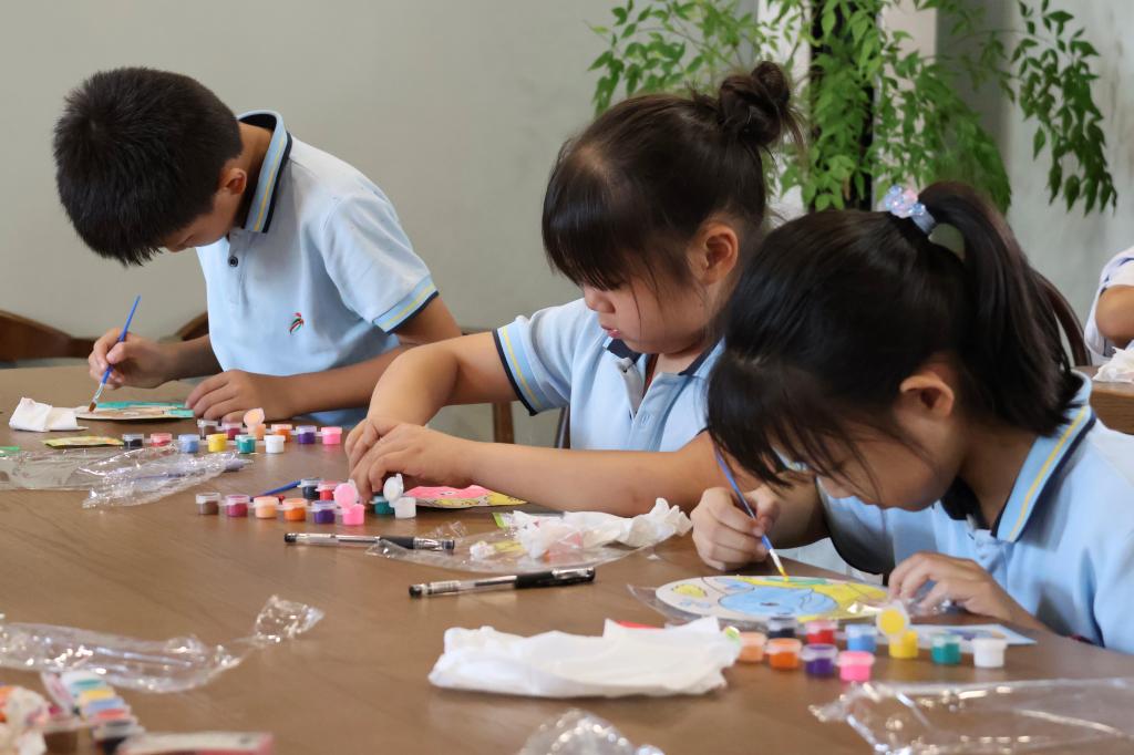 孩子们将贺家村稻田与俄式书房融入扇面创作