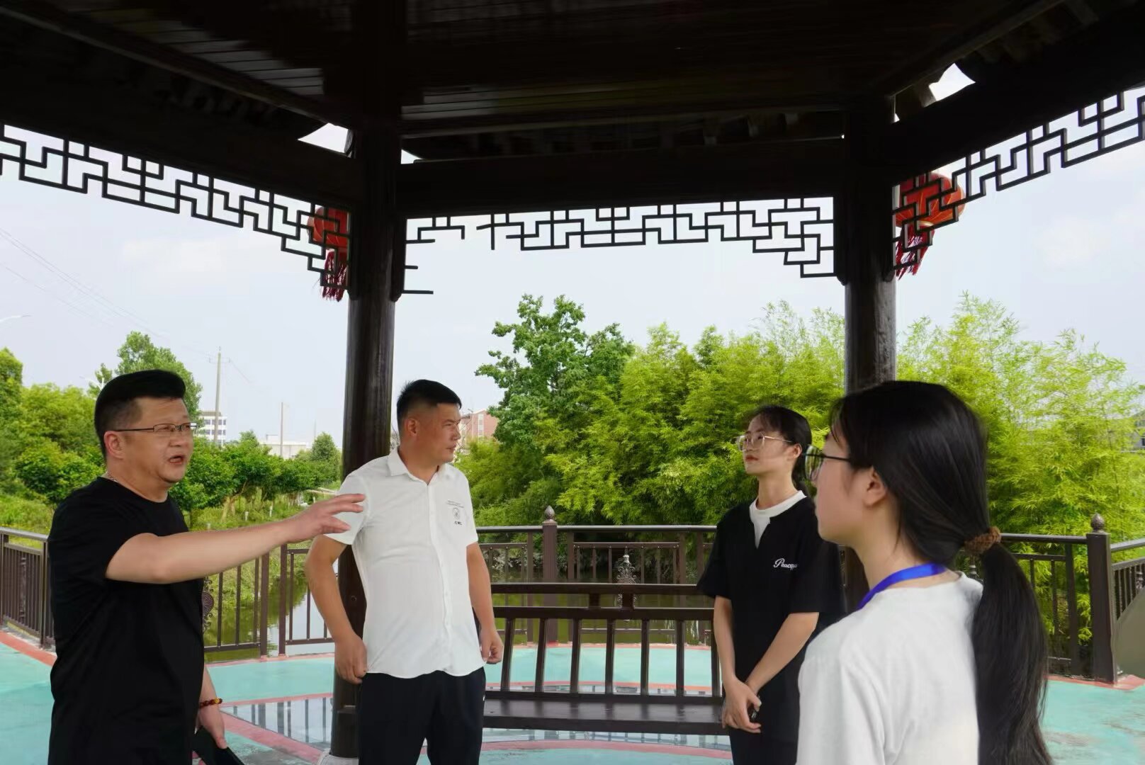 专访伊始,刘勇与钟洋村书记戴星洪便热情邀请实践队员们进村探访。文化礼堂前的太极区里,村民们舒展筋骨、闲话家常,一招一式间漾着自在的烟火气;不远处的涂鸦墙色彩明快,童趣图案攀附墙面,悄然点亮了村庄的角落。队员们随二人在凉亭驻足,刘勇指尖轻划远方景致,细细讲述钟洋村从旧貌换新颜的变迁。