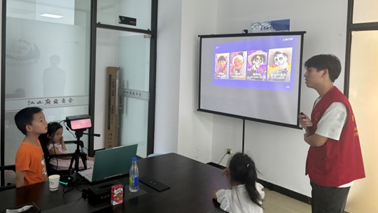 7月16日下午,民俗文化的魅力在教室里悄然流淌。成员们从十二生肖传说讲起,延伸到苗族银饰、藏族藏袍等各族服饰特色,还讲述了饺子、粽子等民俗美食背后的文化内涵,引发孩子们热烈讨论。