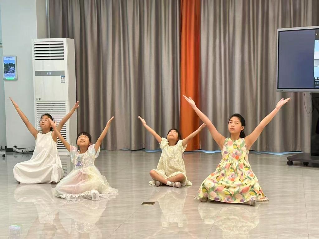大洋社区的实践活动在一场童心绽放的文艺汇演中温情收官。当汇演开始,孩子们首先唱起《小美满》,清澈的童声传递着童真喜悦。紧接着,孩子们带来朗诵《逐梦》,字句饱含憧憬与力量,尽显少年担当与爱国情怀。随后,一位小朋友带来独唱《苟活》,铿锵的歌声将演出推向高潮。最后,孩子们以《半生雪》手势舞谢幕,灵动指尖诠释旋律,传递赤诚坚韧与懵懂的家国情怀。