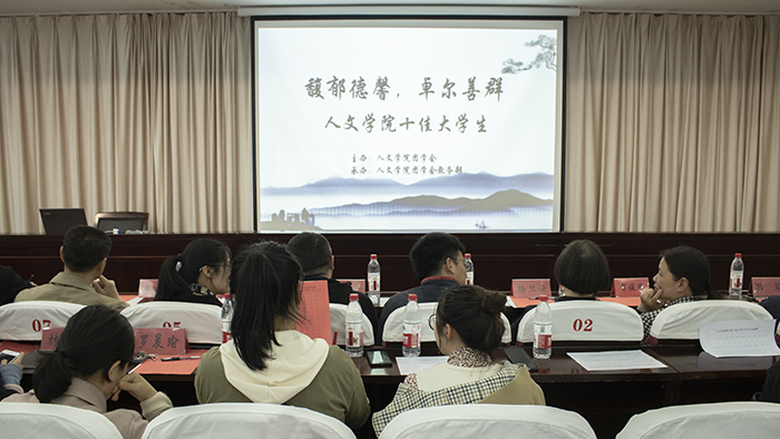 评选会共有30位优秀候选人角逐“十佳大学生”荣誉称号。候选人依次登台演讲,通过幻灯片从学习、工作、生活展示他们丰富的大学生活。选手中不乏幽默风趣、慷慨激昂、热情大方的同学,亦有朴素踏实、勤恳大方、表现得体的同学,他们在不同层面展示了自己的优秀实力,选手的表现赢得了全场观众的阵阵掌声。