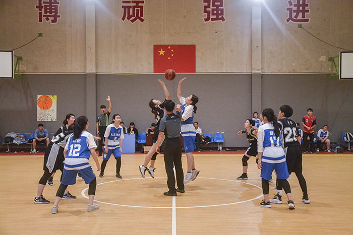 人文女篮也不甘示弱,在与外国语女篮的篮球争锋中仿佛迸发出了无限的力量。每名队员都用心跑位,为队友作掩护,还时不时实现精妙运球、无懈可击的传球和出色的上篮。比赛进入白热化阶段,大二队员郝文一个转身,成功从对方队员手中截下篮球,向右一个假动作成功迷惑对手,而后从左方将球投入篮中。篮球在空中划出一道优美的弧线,球进了!全场的喝彩声此起彼伏,人文啦啦队鼓足了劲为选手们加油打气。在众人的齐心协力下,人文女篮终以34:26的比分一雪前耻,逆风翻盘!