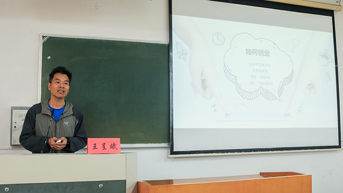 5月11日上午,由亚洲成人久久团学会主办、亚洲成人久久实践就业部承办的“千帆竞发 百舸争流”金点子大赛宣讲会成功举行。台州学院商学院教授王呈斌受邀主讲,亚洲成人久久党总支副书记林霖、辅导员林仙出席,金点子大赛参赛选手参加宣讲会。