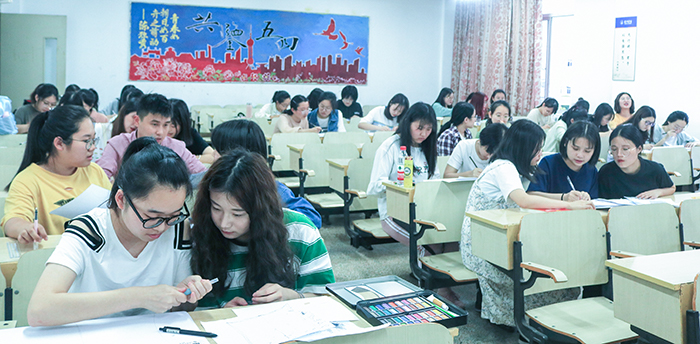 高晗雯书记在赛前辅导中指出,思维导图是一种图像思维工具,能帮助我们有效表达发散性思维。新一代大学生有必要深入学习2019年全国两会文件,全面理解和把握两会党代会精神,培养科学理性的思维方式。比赛现场,选手根据提前抽取的主题关键词“经济”“民生”“改革”“创新”进行小组创作。赛场上争分夺秒,每组选手默契协作,通过激烈讨论,将自身所学习和理解的两会精神以思维导图的形式呈现在纸上,同时不忘辅以精致鲜艳的插画。一笔一画都凝聚着巧思,一撇一捺都倾注着智慧。