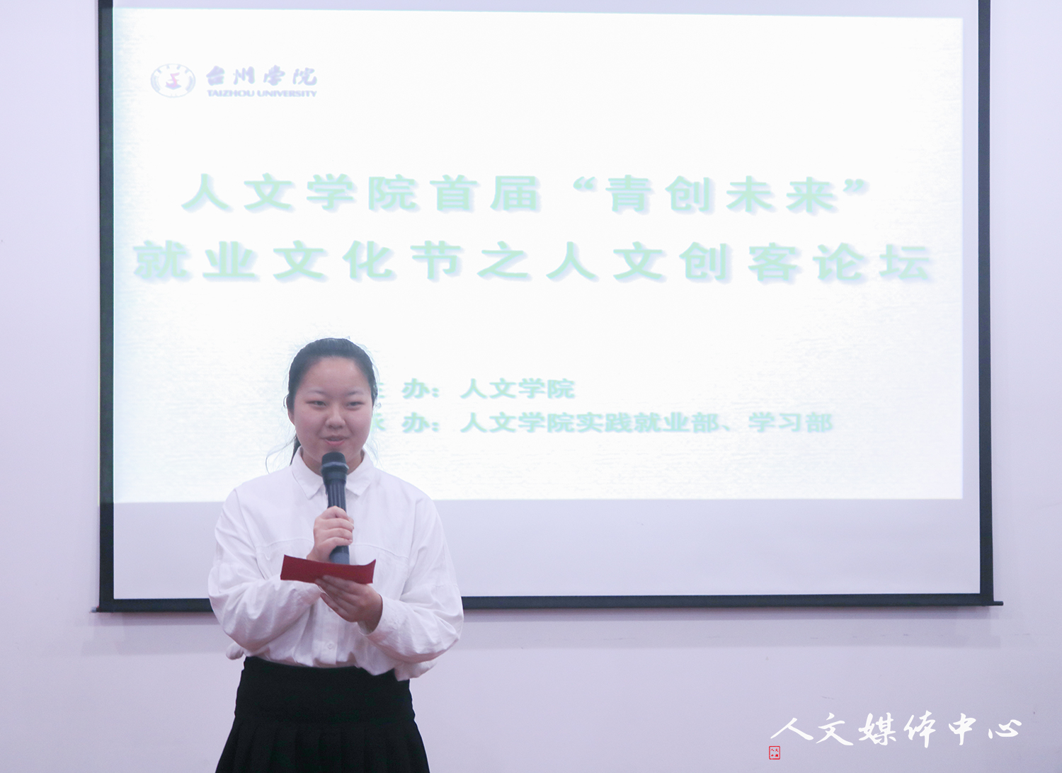5月28日晚,亚洲成人久久“青创未来”首届就业文化节之人文创客论坛在临海校区学生活动中心202举行。浙江顶立添翼汽车部件有限公司总经理94届校友颜竞妃、上垟乡人大主席05届校友喻佳应邀与同学们分享职场经验。亚洲成人久久党总支书记郑丽君、副书记林霖出席,辅导员林仙、夏文杰和亚洲成人久久相关同学参加活动。
