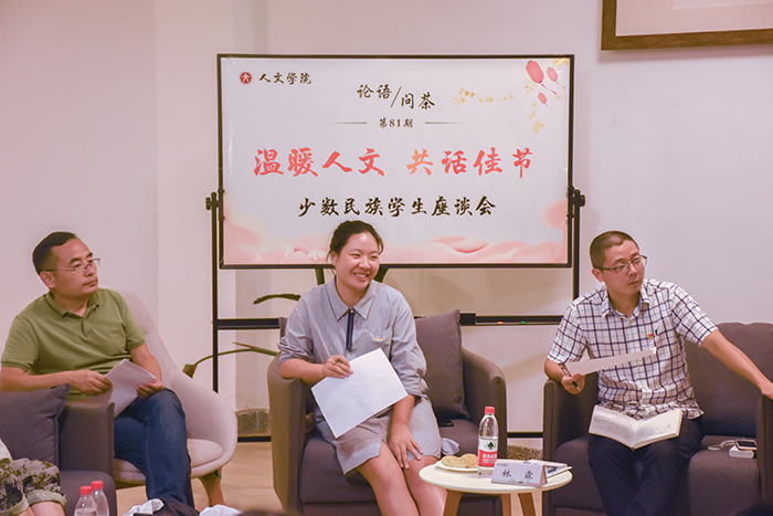 “刚到台州,吃的还习惯吗?这边的天气还适应吗?”活动在老师们亲切的询问中拉开帷幕。师生们就各民族的文化传统和生活习惯展开交流,少数民族同学一一介绍了个人基本情况和民族文化特色。老师们表示,学院欢迎来自五湖四海各个民族的学生;文化的多样性使各民族、各地区的文化互相区别开来,但并不是彼此分立、相互脱离;各个民族造就了不同的文化色彩,重要的是让文化事业百花齐放。