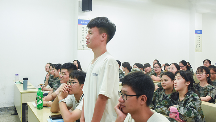 在“你问我答”环节中,新生踊跃提问。针对如何面对失败的问题,蔡佳敏认为享受丢脸是大学的必修课之一,大家应具备直面失败的勇气,适时调整心态,为今后成功做好铺垫。邹芳佳则以合理分配时间解答了如何协调工作与学习的问题。16级老生代表告诉新生们要珍惜时间,努力学习是学生的本职,鼓励他们要尽快确立学习目标,积极开拓视野,发掘各方面能力,全面提高自己的综合水平。