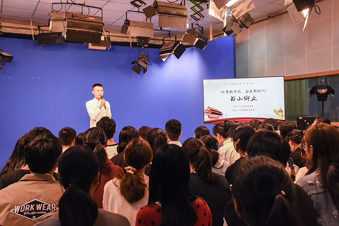 10月16日晚,由亚洲成人久久分团委主办,17中教2班团支部承办的第五十九期“书山仰止”——“礼赞新中国 奋进新时代”活动于临海校区人文演播厅举行。17中教2班班主任杜瑶瑶受邀出席。