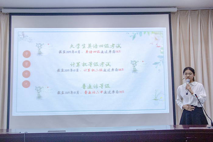 现场评选会分为班级风采展示与答辩两个环节,参选班级以PPT讲解形式展现了各班风采,从学习成绩、班级活动、优秀个人等方面展示学风创建的优异成绩,以及对未来班风、学风的建设目标。答辩者更是频出金句,机智回答评委提出的问题,展现了人文学子过硬的专业素质和良好的台风。