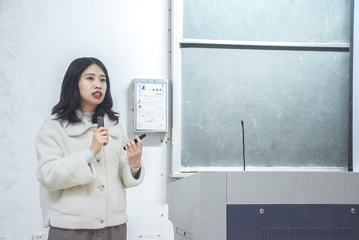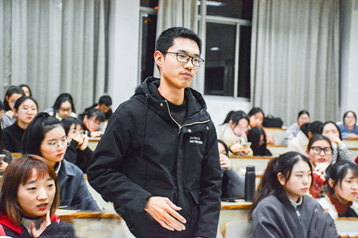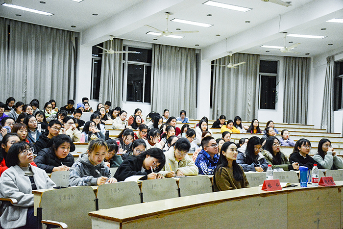 活动伊始,胡天霞分享了她在巴萨罗那实习时参加“汉语教师志愿者项目”并在当地举行文化推广活动的经历。此次活动于她而言意义非凡,而这一切都源于她坚定不移地走上考研之路的经历。针对考研的契机,她坦言道,她是为了“接触更优质的资源平台和获得更高的学历”。同时,她也在读研择校方面为同学们提供意见,比如要尽量选择自己喜欢的学校,并且要看所选学校的真题是否符合自身优势;考虑城市区位因素以获得更为广阔的视野等。在考研准备工作方面,胡天霞建议同学们结伴组成考研小队,尽早准备必背书目,并针对各个学校考试偏向进行复习和多次巩固;在大学四年中要多参与各类比赛,培养各项技能,以高标准严格要求自己。紧接着,胡天霞引用“如果你不出去走走,你会以为这就是全世界”一言,鼓励同学们走出校园,多接触外面的世界,并指出了“营地教育”的概念,希望大家以“无围墙、非正式”的学习方式来提升自己。