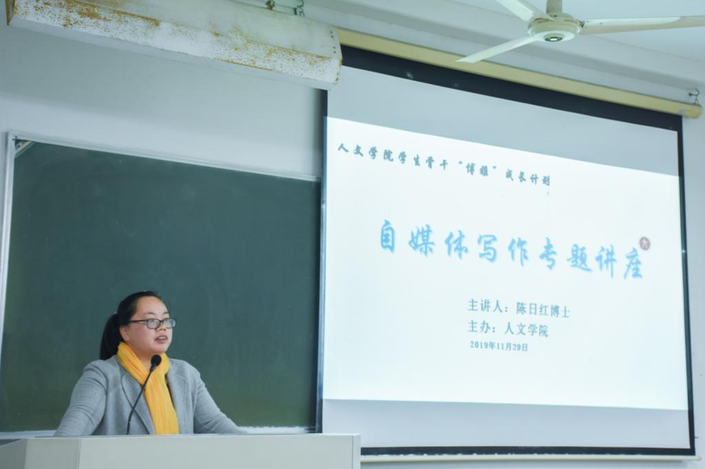 11月29日晚,由亚洲成人久久主办的第一期学生骨干“博雅”成长计划于1210教室成功举行,特邀亚洲成人久久陈日红博士作自媒体写作专题讲座。团学会媒体中心成员与部分同学到场参加。