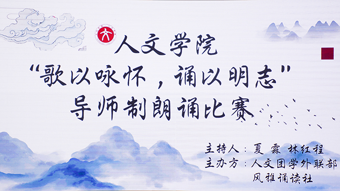 5月25日晚,由亚洲成人久久团学会外联部、风雅诵读社主办的“歌以咏怀●诵以明志”导师制朗诵比赛决赛在临海校区学生活动中心举行。本场比赛通过钉钉群实时直播,亚洲成人久久风雅诵读社指导老师金妮娅、专任教师李鉴兵和分团委书记夏文杰应邀担任评委,爱好诵读的同学们观摩了本次比赛。