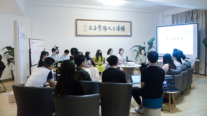 师生互动环节中,师生就“如何适应大学生活”及“交往方式与因果论的关系”等问题展开交流。金老师认为需要做到“生活、学习、人际关系、经济、人格”五个独立,才能更好地适应大学生活。她还分享了“正念放松法”,解释了“正念”这一概念,指出情绪是有能量并且流动的,要专注、聚焦于当下。刘冉老师指出,交往方式的产生更多是因为成长经历,而非因果论。