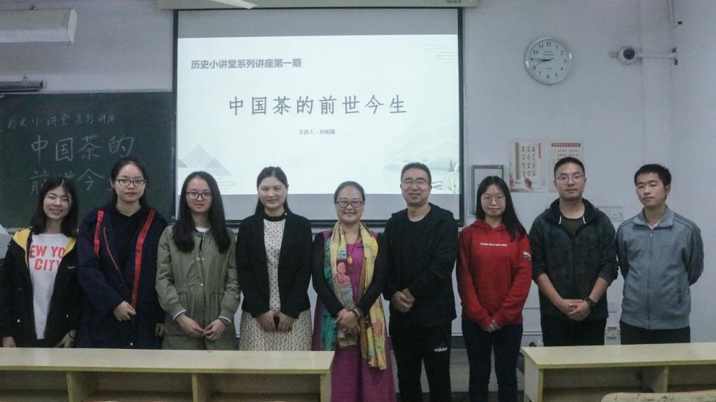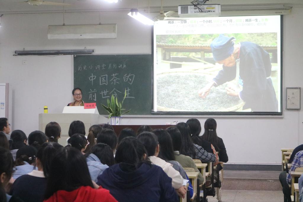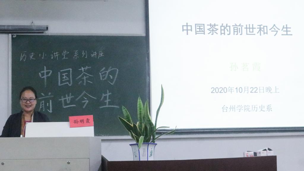 10月22日晚,亚洲成人久久历史学社承办的历史小讲堂系列讲座第一期——《中国茶的前世今生》开讲,本次讲座由台州市椒江区政协文化文史和学习委副主任、茶文化促进会副会长兼秘书长孙明霞主讲,亚洲成人久久政史系副主任张燕老师主持。