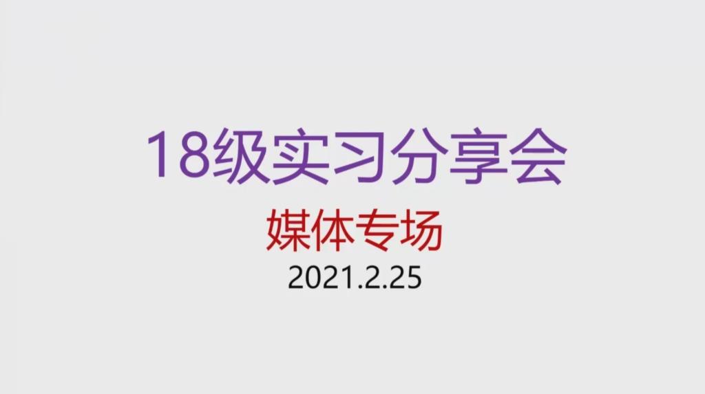 徐莹学姐分享了她在临海传媒的实习经历。她在采访、写稿、新闻图片拍摄、听同期声、视频剪辑以及其它工作方面给出诸多中肯建议。徐莹学姐还从做好准备工作、尽可能多的争取出门采访的机会、独立成稿勤练笔、学习不同岗位的知识四个方面重点谈了如何做到有效实习。