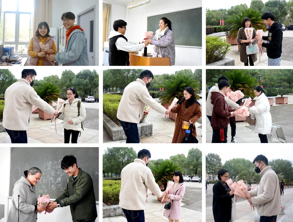 我院安排学生在课余时间给女教师和女同学们赠送鲜花,为她们送去节日的问候与祝福。送花现场热闹非凡,气氛融洽,同学们将鲜花递给每一位女教师,“女神们”向送花同学轻声说着感谢。老师们的脸上洋溢着惊喜与幸福,师生微笑对望,暖暖温情充盈着校园。