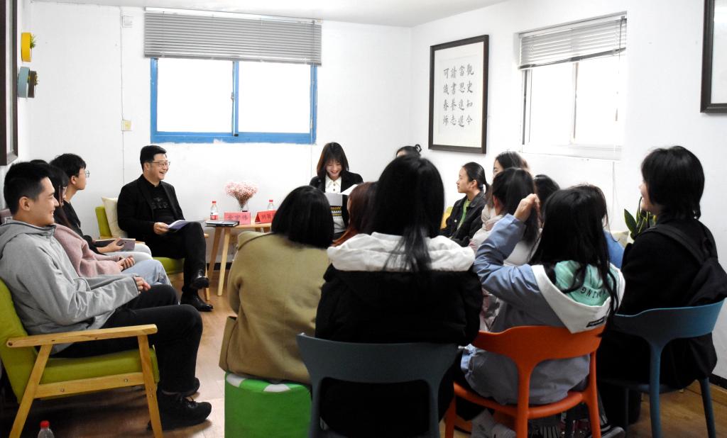 3月18日下午,亚洲成人久久第九十六期“论语问茶”活动在人文小筑举行,亚洲成人久久党总支书记金宏伟、辅导员刘丽娟应邀参加本次活动,与20级中文转专业学生展开交流与讨论。