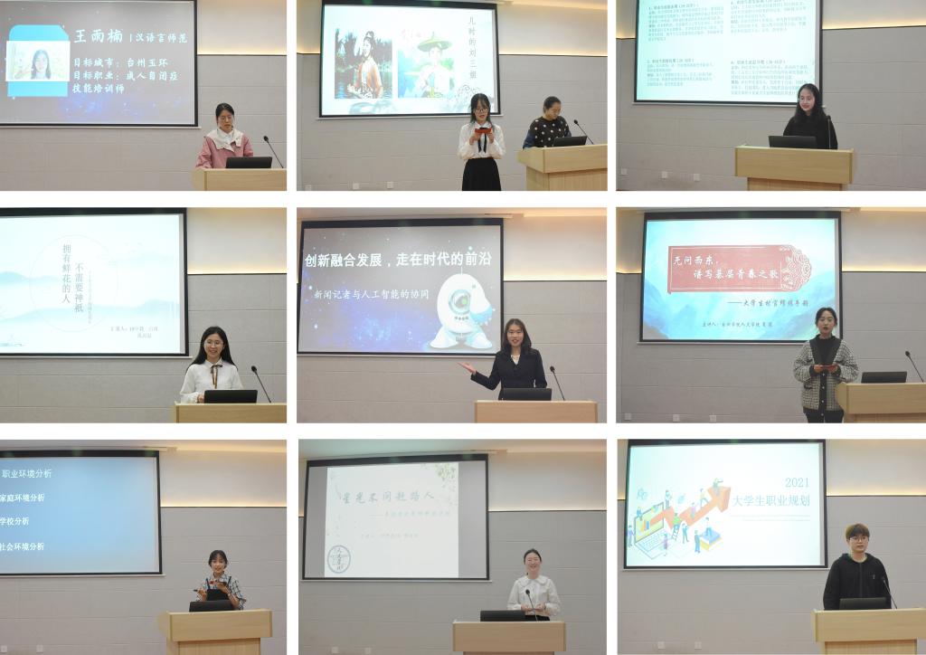 随后,成功晋级本次职业生涯规划大赛决赛的10位同学进行了展示。同学们在演讲中根据自我认识,综合分析社会环境、家庭环境、学校环境等各方面因素,展示符合自身实际的职业生涯规划方案,向评委和观众介绍自我,描绘未来。