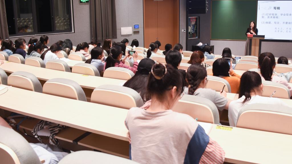 活动伊始,王君君带大家揭开了记者职业的神秘面纱,分享了在路桥报社多年的记者和编辑经验。她强调在自由采访前要充分了解采访对象,特别是跟随领导采访时要注重礼仪问题。她现身说法,以给消防队写稿时的经验为例,阐明了融入到采访对象中去的重要性。王君君还提出写作时必须时刻保持严谨的态度。随后她向同学们介绍了自己作为编辑部主任的工作,在修改他人语句文字时要兼顾文章整体,保留每个人的写作风格,她笑说自己的任务远没有旁人认为的那么轻松和风光。紧接着,王君君将平时积累的新闻稿技巧倾囊相授:写稿前要打好框架;撰写新闻稿时必须有条理地围绕新闻事实展开,用细节和故事让新闻稿的内容更加丰满;写完稿子之后务必再三检查,把自己当作第一读者,防止出现原则性错误。