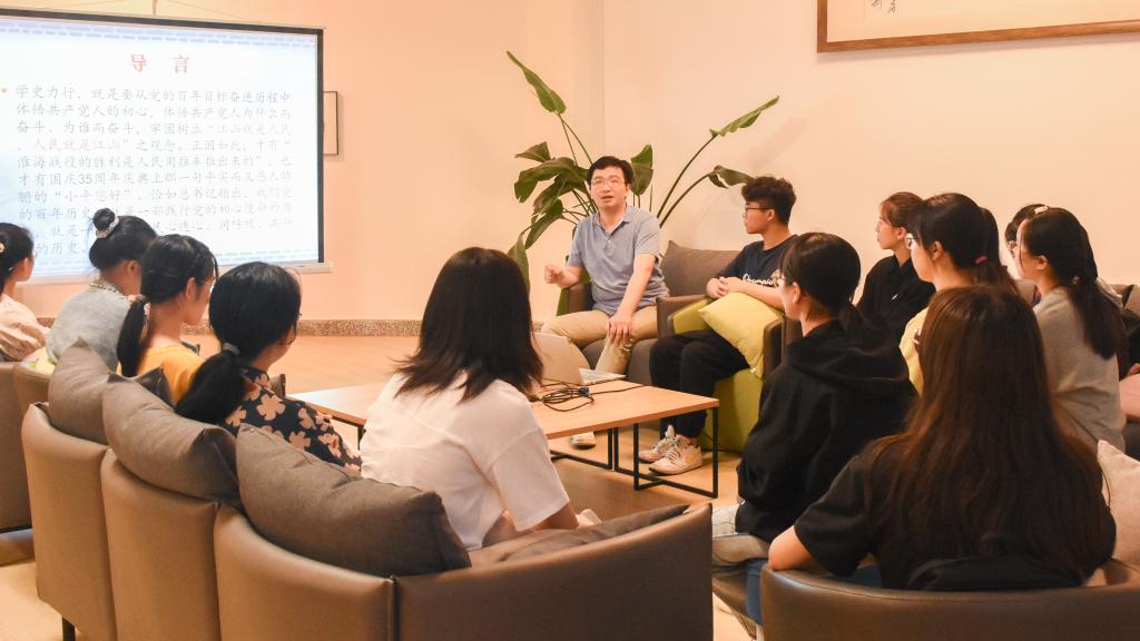 活动伊始,柯联民老师为同学们介绍了何为四史——中共党史、新中国史、改革开放史和社会主义发展史以及习近平主席提出的“学史明理、学史增信、学史崇德、学史力行”。随后柯老师以电视剧《觉醒年代》引出关于马克思主义在中国传播的历程。柯老师从瑞金谈至井冈山,讲述了这其中无数个英雄儿女的热血战斗故事,他希望同学们要像革命者一样心中常怀理想信念,坚定地朝着目标前进,在激情奋斗中绽放青春光芒。