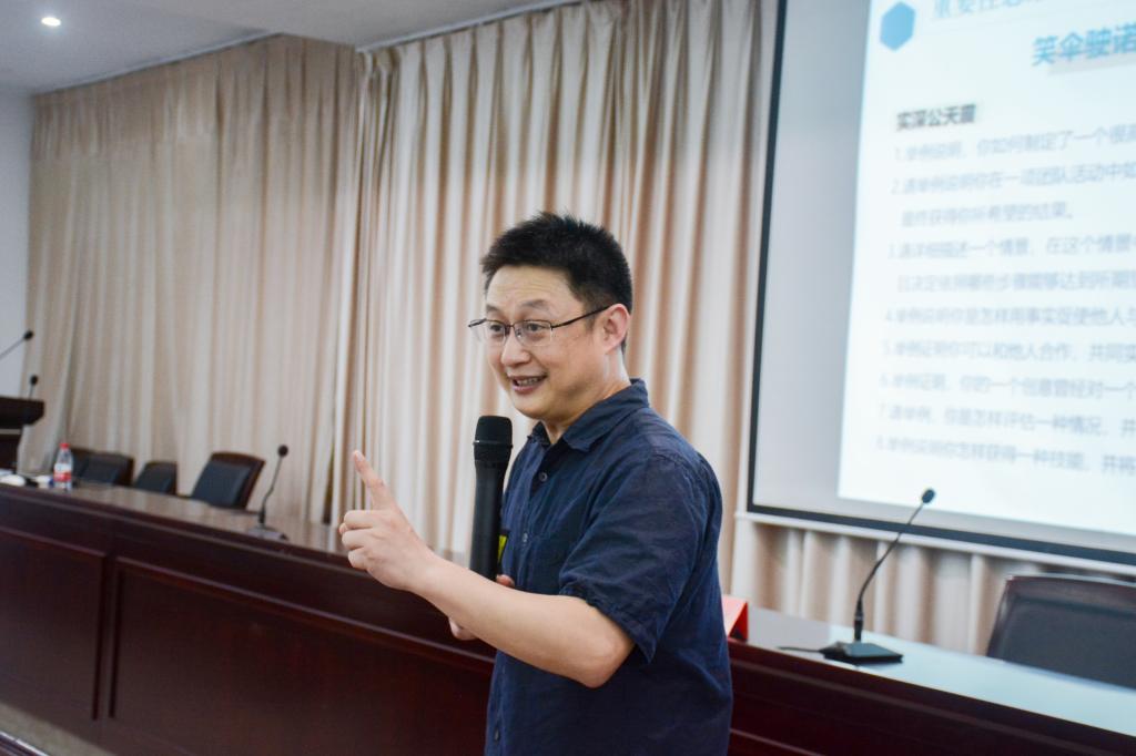 讲座伊始,周功满老师围绕重要思维、责任思维和压力思维三大思维进行详细阐述。周老师提出学生会是大学最好的思维训练场,加入学生会可以锻炼自身组织能力、计划能力、社交等能力,提高个人信心。作为学生干部应以更高的标准要求自己,强化责任意识和奉献意识,树立良好的学生干部形象,起好模范表率作用。活动尾声,周老师就“如何增强抗压能力以更好应对学生工作”提出三点建议:一是保持旺盛精力,对自身工作热爱;二是培养理性思维和阳光心态;三是探寻新鲜感,培养成就思维。