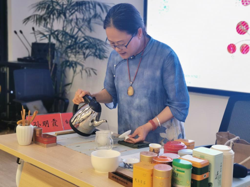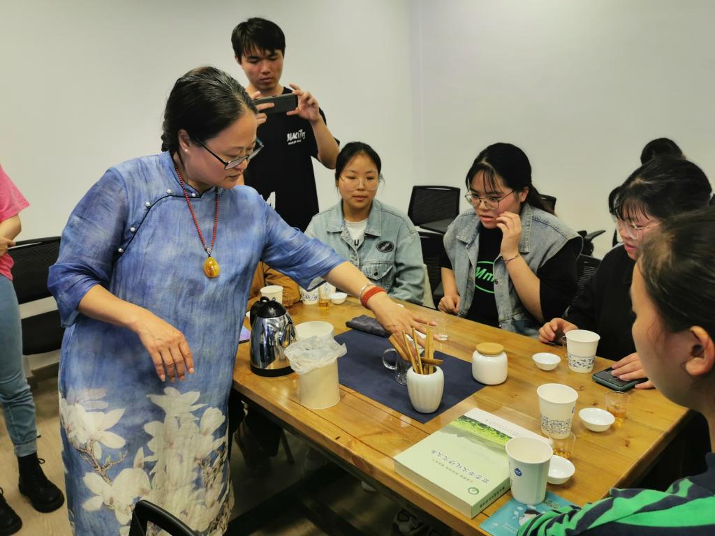 孙老师告诉大家,即使是同一时间、同一地点,用一样的水,一样的器皿,不同的人泡出的茶是有差别的,这与个人的心态、心性、对茶的理解和泡茶的熟练度等有密切关系。小小的一杯茶,学问却很深,深在人与人之间的差异,也体现着文化的积淀之深。