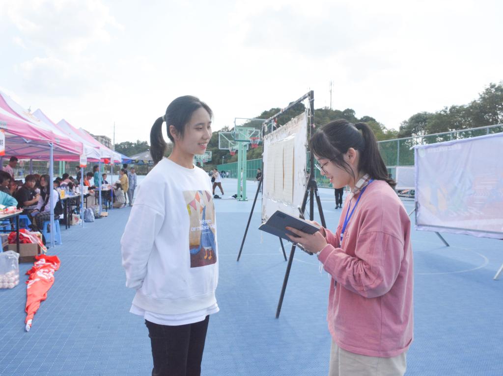 回顾整个志愿过程,张柔灵、洪玉婷感触颇深。“我主要负责女子4×100的赛事保障。当枪声一响,大家共同为运动员加油呐喊时的那份凝聚力,让我明白,400米跑道上传递的不仅仅是一根接力棒,更是人文学子团结友爱的见证。” 洪玉婷说道。而在张柔灵眼中,志愿者工作虽然紧张繁忙,但帮助他人收获的充实感和成就感,让一切疲惫都变成值得。同时,她对明年的运动会表示期待,希望自己可以再次以志愿者身份出现在运动会赛场上。