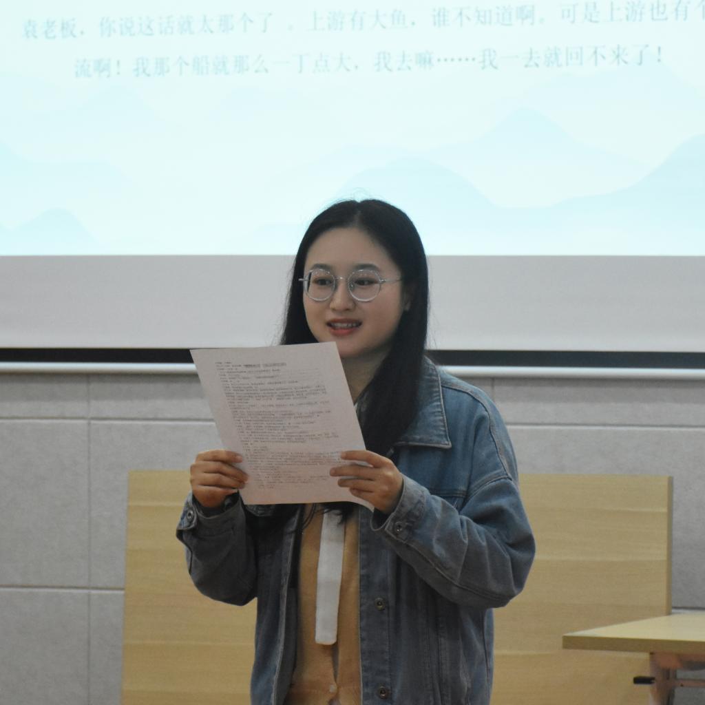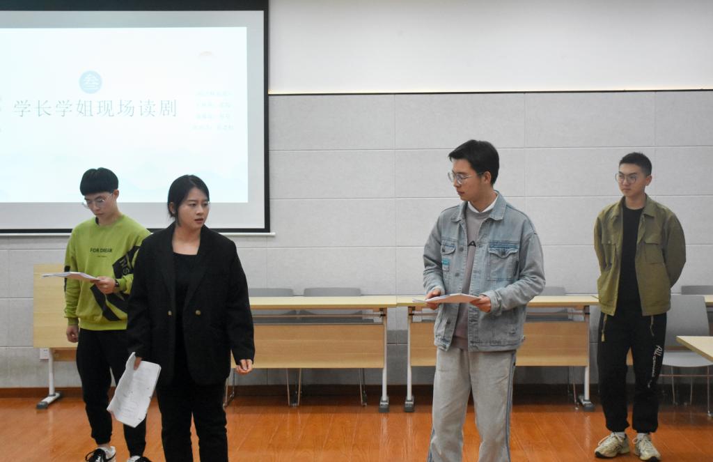 活动伊始,主持人简单地介绍了两部经典剧目的背景资料,引出本场活动的环节与主题;金妮娅老师扼要介绍了读剧的要求与技巧,鼓励同学们大胆尝试。随后,同学们在两部剧本中选择自己喜欢的段落,以两两配对或单人表演的形式进行自由朗读,同时全身心投入角色、演绎剧中人物。即将参加学校第十一届话剧节演出的部分演员也进行了现场读剧,展示了成熟的台词功底与朗诵技巧,让同学们受益颇丰。