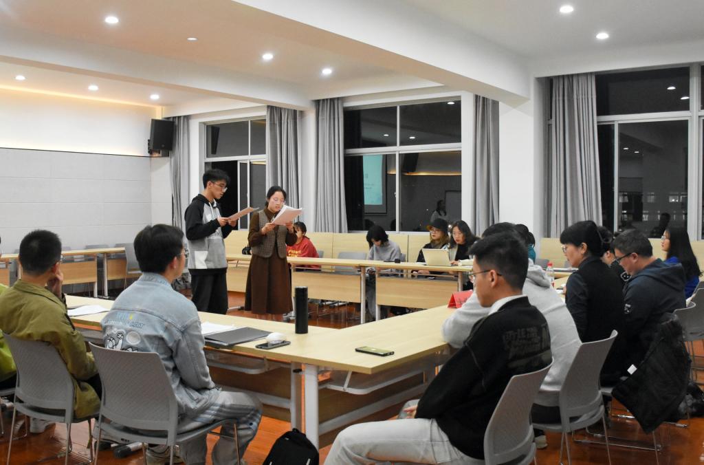 最后,两位老师对本次读剧会进行了总结:话剧作为一种传播文化的艺术形式,能很好地展示当代大学生风采,促进相互之间的交流合作;希望更多人能够了解并热爱话剧,让快节奏生活的人们找到心里那一份慢节奏的慰藉!