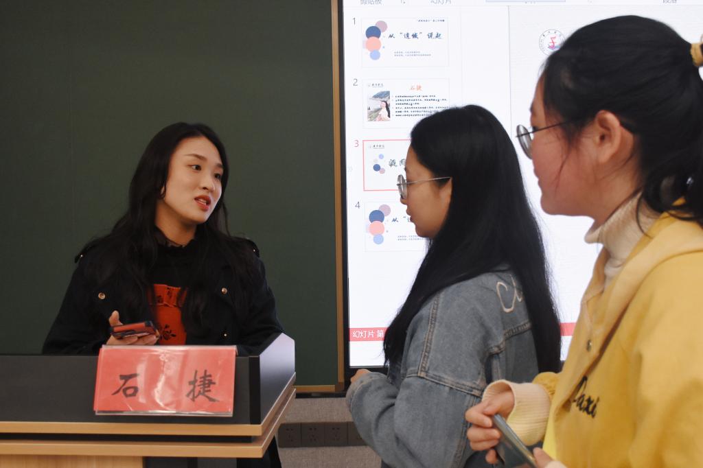 提问环节,针对同学们比赛经验不足、成绩不理想的问题,石捷学姐建议同学们跳出舒适圈,大胆向有经验的学姐、学长请教。当大家问到关于如何进行学生身份向教师身份转换,她宽慰同学们不要给自己过大压力,努力提高自身教师技能水平,朝着成为一名优秀教师方向前进。