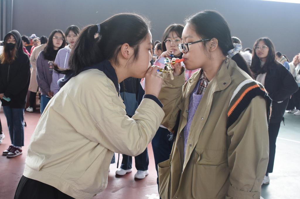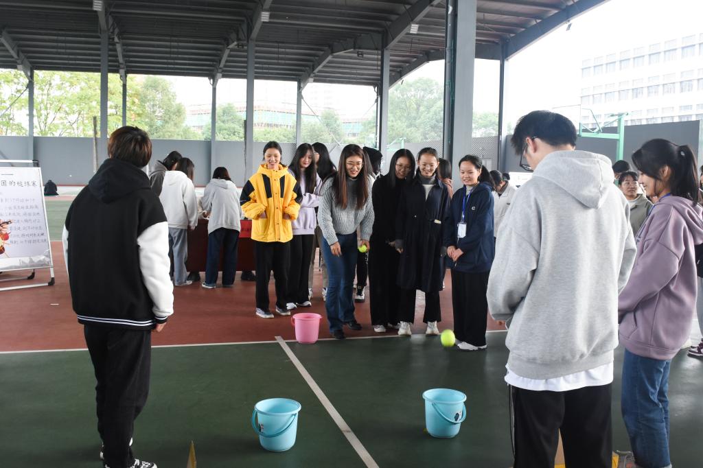 开幕式结束后,参赛人员以寝室为单位在风雨篮球场参加“跟随爱丽丝”趣味游园活动。本次游园活动由“别跑——兔子先生!”“心灵默契”“古怪——扑克王国的槌球赛”“风干——热身赛跑”及“梯子——兔子公寓”五个项目组成。每个项目看似简单,对同学之间的相互配合却是不小的考验。初冬的风夹带寒意,但现场气氛却温暖融洽,各寝室成员在协作中进行游戏,时不时爆发出一阵阵爽朗的笑声。看!有的组员配合默契,迅速地完成了项目,正拍照来分享成功的喜悦;有的组员还正在磨合,互相给对方加油打气,又被同学滑稽的模样逗乐。通过此次活动,寝室成员间的默契增加了,同学们也更加深刻地体会到了团结协作的重要性。