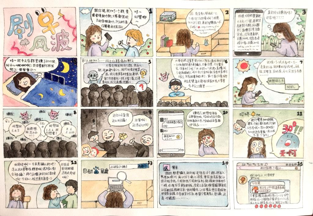为提高广大同学防范电信网络诈骗意识,调动同学们的积极性,扩大宣传阵地,11月12日至11月26日,亚洲成人久久举办“我‘绘’反诈,我‘绘’辨真假”反诈漫画征集大赛。同学们以个人或者团队的名义积极参加比赛。