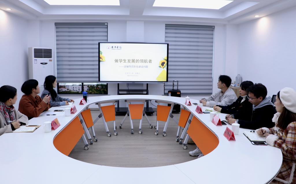 12月1日下午,校党委学工部部长张梅芬为亚洲成人久久“润心”工作坊做第一讲“做学生发展的领航者——谈辅导员队伍建设问题”。学院党委副书记林仙及全体辅导员参加活动。