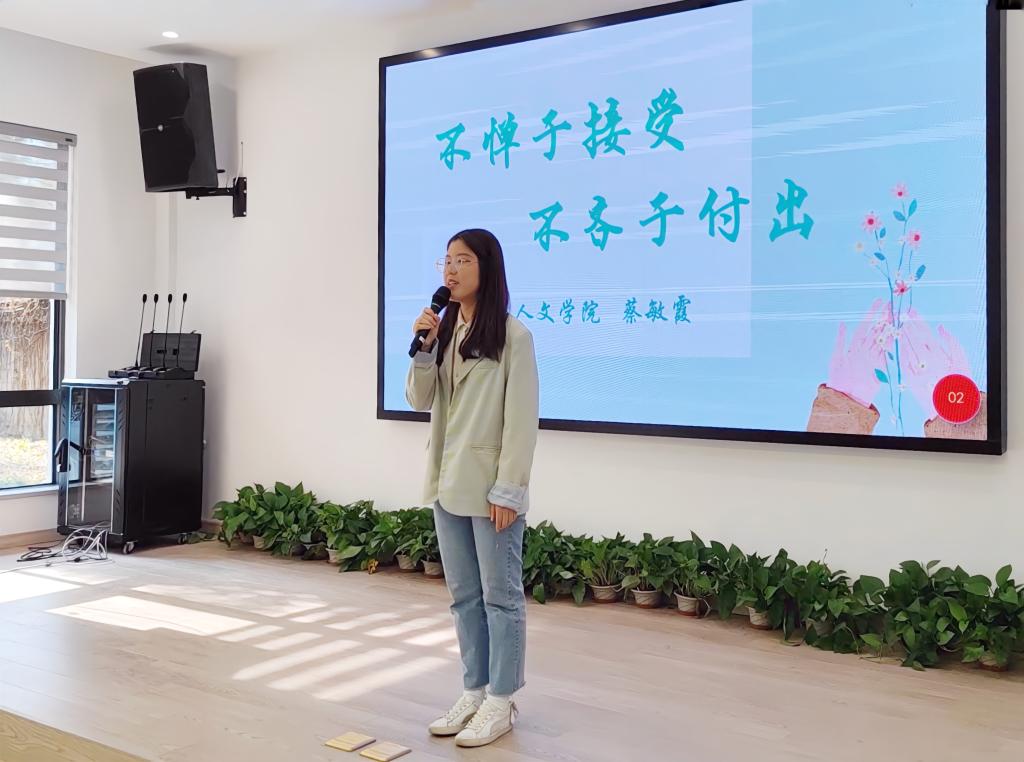 经过院级选拔,11位参赛选手进入决赛。他们从自身经历出发,用朴素平实但感人肺腑的话语讲述他们心怀感恩、在他人的帮助下克服人生路上困难的事迹。有选手将现实生活中的大山和“贫困”这座大山结合起来,讲述了在跨越现实中的大山后,如何通过资助政策跨越“贫困”的障碍,不断提升自我。这是对感恩于心、回报以行最好的诠释。选手们用鲜活的事例、真挚的情感感染了在座的每一位观众。