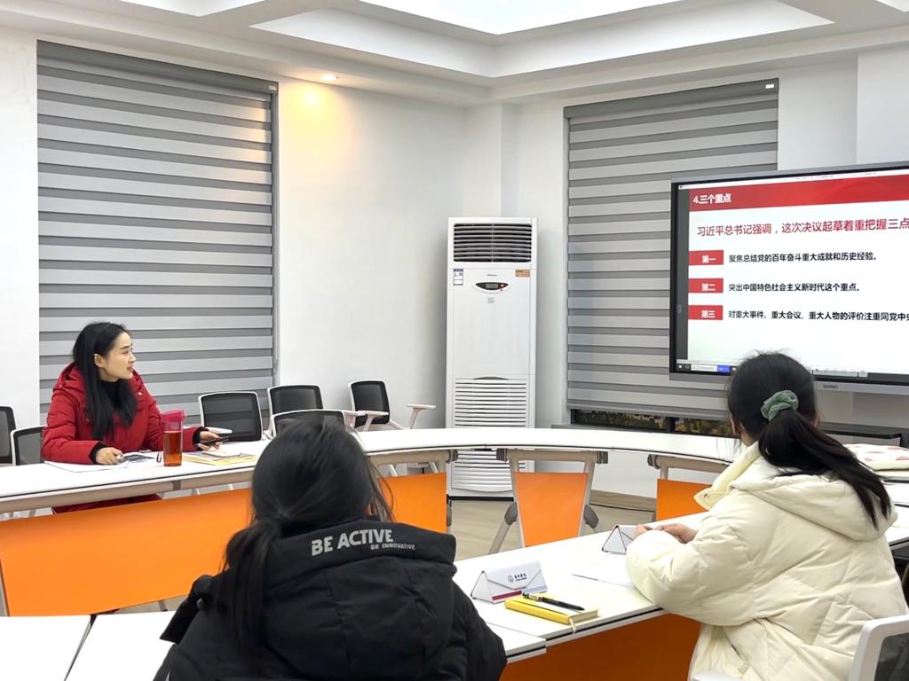 为深入学习宣传贯彻党的十九届六中全会精神,推动全会精神入脑入心,12月29日晚,亚洲成人久久“砺学计划”第七期于广文书院师生研讨室3举行,学院党委副书记林仙与团学学生干部学习研讨党的十九届六中全会精神。