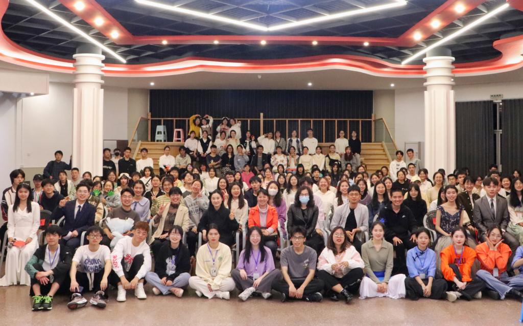 在团学会各部门集体合照和活动剪影的视频中,晚会正式拉开序幕。乐起舞动,《热爱105度可爱的你》瞬间点燃了全场的热情。紧接着,情景剧、舞蹈、舞台剧轮番上演,精彩纷呈。团学会办公室带来的朗诵剧《红船初心》生动演绎了开天辟地、敢为人先的红船精神,令在场观众为之动容。小品《校园择偶记》与光影剧《青春》共同描绘了美好的大学生活,让新生们对今后生活又多了一份期待。“我的母语是热血一般的黄河的波涛……”风雅诵读社以一首《我有祖国,我有母语》激发了大家强烈的爱国之情,现场掌声雷动。惊喜环节中,辅导员李彦铭以及21级同学更是用一首《稻香》将晚会气氛推向高潮。晚会在新生大合唱的歌声与汇集着诸位老师寄语的视频中圆满结束。
