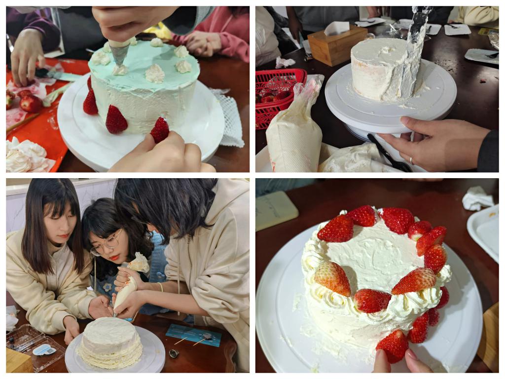 经过部门成员们的设计与通力合作,同学们得到世界上独一无二的蛋糕成品。看着自己亲手制作的蛋糕,大家体会着diy的快乐,更有同学举着蛋糕在现场走了一圈,展示团队的作品。草莓、蓝莓、奥利奥装饰的奶油蛋糕不仅填在嘴里,更甜在大家的心里。不少同学还发朋友圈分享集体合作的快乐。