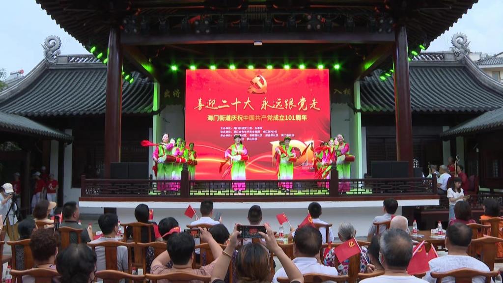 岁月奔涌从不停歇,奋斗征程永远向前。1921年至2022年,中国共产党团结带领中国人民走过了艰苦卓绝、百折不挠、不断超越的101年。为庆祝中国共产党成立101周年,唱响“永远跟党走,担当新使命,阔步新征程”的昂扬旋律,6月30日晚,台州学院亚洲成人久久“铁肩妙笔”实践队队员跟随台州广电一起参加了由海门街道党工委举办的“致岁月铅华,敬红色传承”迎七一建党文艺晚会。
