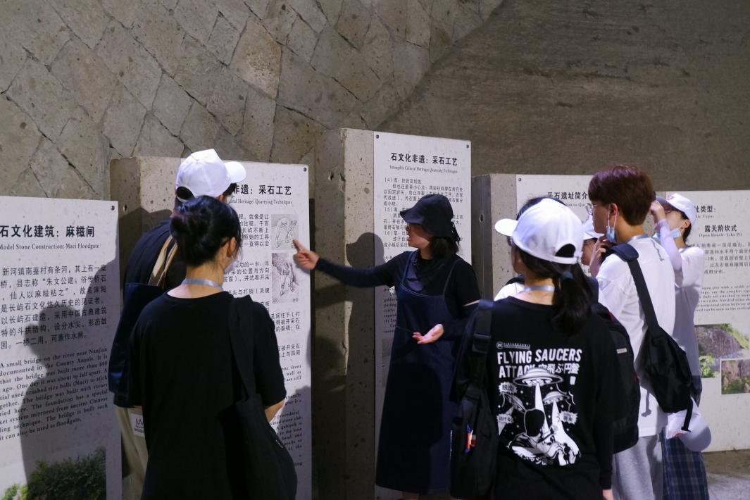 7月4日,实践队一行赴温岭石文化研学基地考察,受新河镇长屿小学校领导接待。据了解,温岭石文化研学基地以长屿小学为载体,将石文化紧密融入校园文化当中,分管副校长牵头少先队辅导员编制“美丽的石头会唱歌”系列研学课程读本,并以座谈会形式向实践队全体成员作详尽介绍,为后续实践队诗路研学读本提供极佳的一手资料。随后,前往“长屿硐天”景区实地考察,水云硐内陈列有千百年开矿采石后留下的历史痕迹,并辅之以朝代定位。实践队就采石历史、采石技术、实地研学点等问题展开激烈讨论。