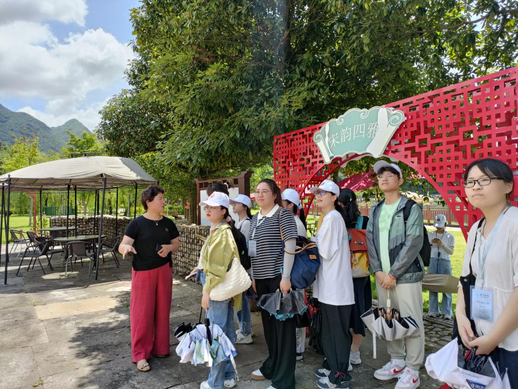 实践队在柔川讲堂与实践营地负责人陈春芳女士展开座谈。陈总从个人发展经历对企业文化的重要性谈起,结合实践营地的发展规划及基本情况,向成员展示营地内体制机制的完善程度。就未来的发展方向,陈总表示,将在迎合市场新需求的基础上进行相关研学产品的进一步研发,创新推动营地内宋韵文化建设,加强校企合作力度。针对成员们提出的文旅融合、诗路文化与研学等问题,陈总指出“文旅融合是旅游业发展的第二个春天”,研学实践中文化落地是重中之重。