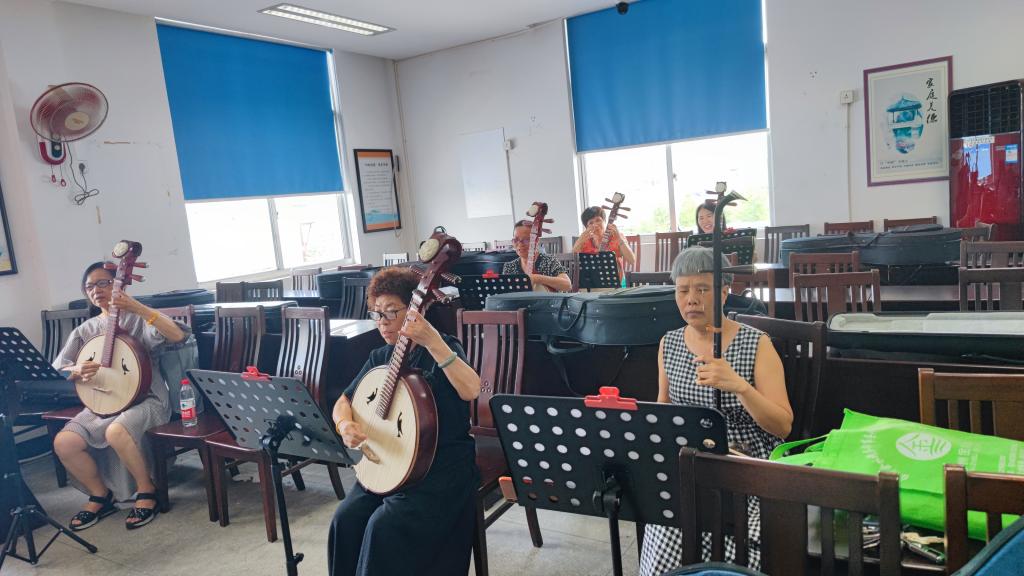 随后,实践队在张建民先生的带领下参观了文化礼堂、烈士陈安宝故居和名医陈弼仁祖居。文化礼堂不仅保存有详细记载了村史、村庄荣誉等洋屿村乡风民俗的文献资料,还为村民们设置了书法教室、民乐教室等活动室供其休闲娱乐。在调研过程中,实践队成员还有幸欣赏了洋屿村老年乐团演奏的《茉莉花》。洋屿村文化礼堂融地方特色和乡村文化于一体,在进行古村文化建设的同时关注村民的精神需求,旨在为村民打造良好的精神家园。